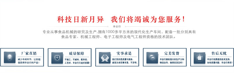 廣東豐會行智能裝備有限公司,廣州永豐廚具設 備 于 1997年 廠辦 , 專業從事食品機械的研究及生產。本廠擁有1000多平方米的現代化 生產車間,配備一批分別具有食品專家,機械工程師,電子工程師 質的產品生產及售后服務的專業隊伍,從而為客戶服務提供優(yōu)質的 及電氣...
